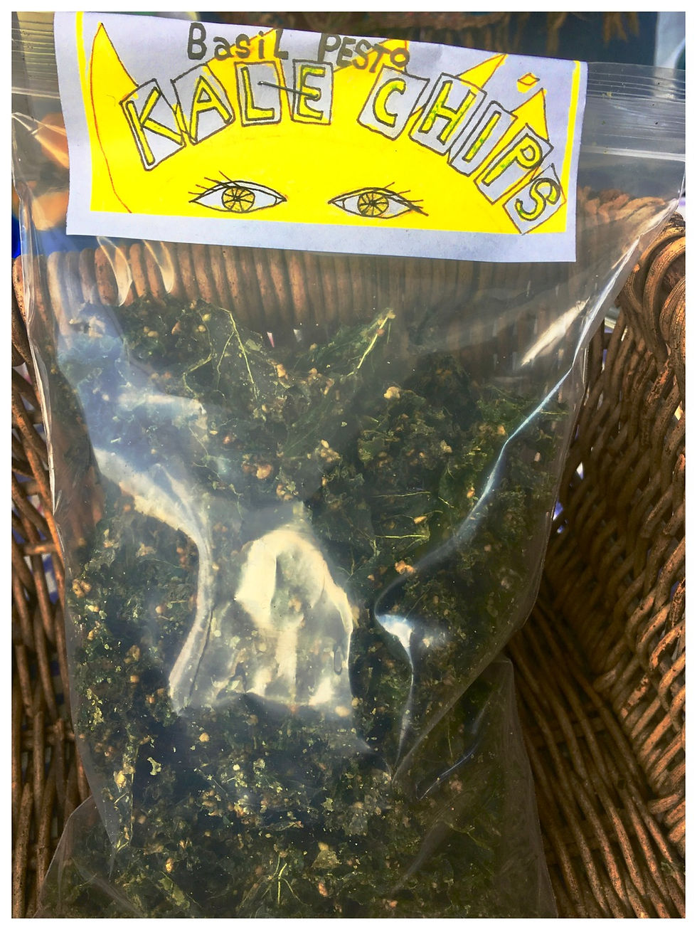 I figured out how to make a by-product. By-products are one of the ways you can pay for help. It's with the kale chips getting ground up and added to toasted sesame. Kale-masio, like gomasio from Japan. It was an amazing boost because, those little crumbles used to be put at the bottom of the kale chip bag, but then I made a new product from it. I use that money to pay a helper, so I didn't have to pay out of my own pocket. That was a definite way to boost the business.